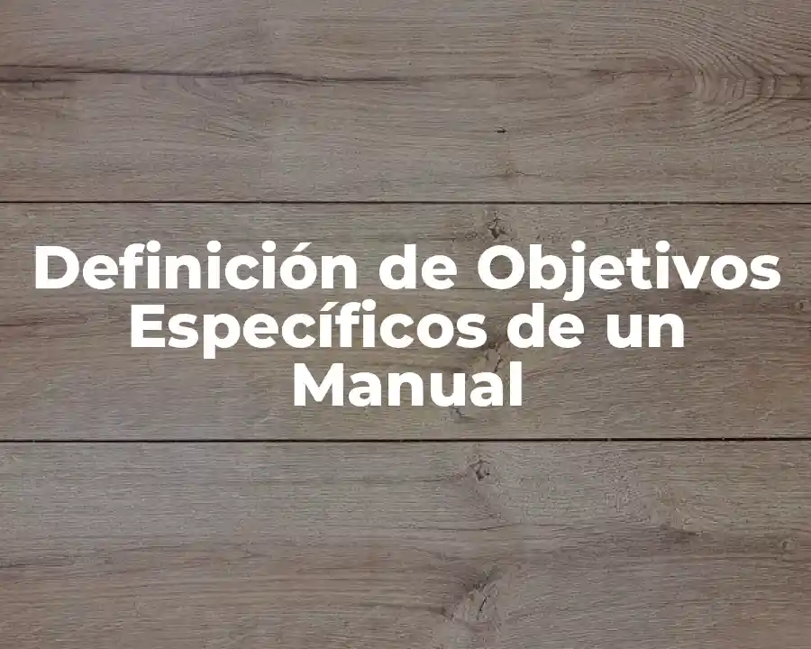 El término objetivos específicos de un manual se refiere a resultados concretos y medibles que se buscan lograr a través de la utilización del manual. Se debe usar en una oración de la siguiente manera: Los objetivos específicos del manual son reducir los errores en la producción en un 10% en el plazo de 6 meses.