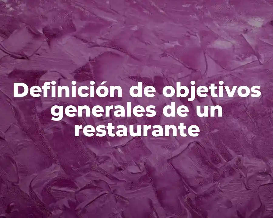El término objetivos generales se refiere a la misión y visión de un restaurante, y se traduce en acciones concretas para lograr la satisfacción del cliente y la supervivencia en el mercado. Se puede usar en una oración como: El objetivo general de nuestro restaurante es ofrecer una experiencia gastronómica única y memorable a nuestros clientes.