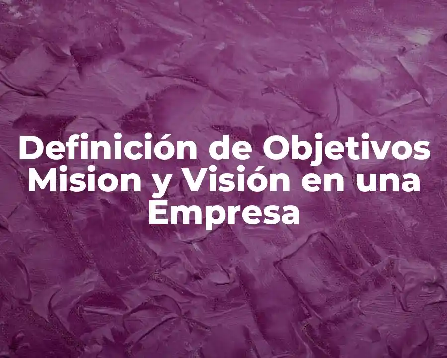 El término mision, visión y objetivos se refiere a la descripción de la empresa y su papel en la sociedad, la descripción del futuro que se desea lograr y los pasos que se deben dar para alcanzar la visión. En una oración, se debe usar el término mision, visión y objetivos para definir el rumbo y dirección de la empresa.