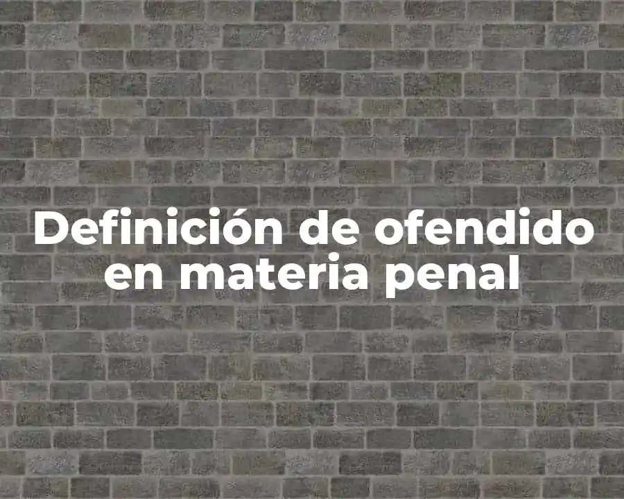 Un ofendido en materia penal es la víctima de un delito penal, es decir, una persona que ha sido objeto de una acción u omisión ilícita que ha causado daño o peligro a su integridad física o psíquica. En este sentido, el ofendido es el titular del derecho a la reparación y garantía de sus derechos.