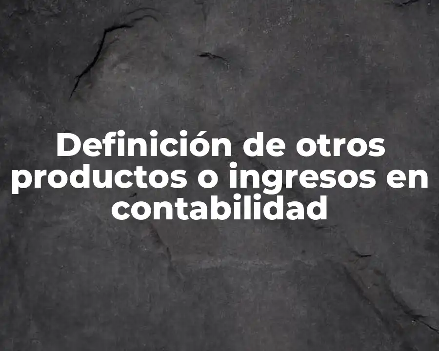 En el ámbito de la contabilidad, la definición de otros productos o ingresos se refiere a aquellos ingresos que no provienen directamente de la venta de bienes o servicios, sino que se generan como consecuencia de actividades comerciales o financieras. Estos ingresos pueden incluir dividendos, intereses, comisiones, royalties, ganancias por venta de activos no corrientes, entre otros.