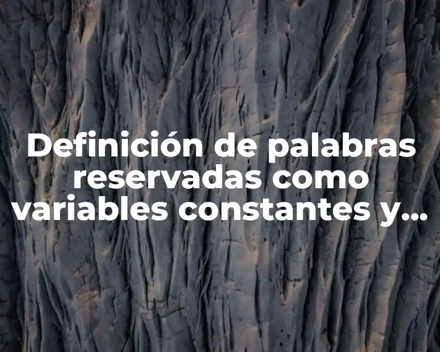 El término palabras reservadas como variables constantes y sintaxis se refiere a un conjunto de palabras y símbolos que tienen un significado especial en un lenguaje de programación. Se debe usar este término para referirse a las palabras y símbolos que tienen un significado especial en un lenguaje de programación.