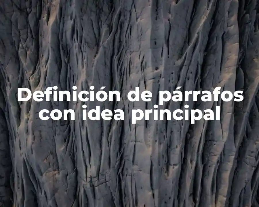 El término párrafo con idea principal se refiere a una estructura que se utiliza para presentar una idea o tema central y desarrollarla a través de varias oraciones relacionadas. Se debe usar un párrafo con idea principal en una oración para presentar una idea o tema central y desarrollarla a través de varias oraciones relacionadas.