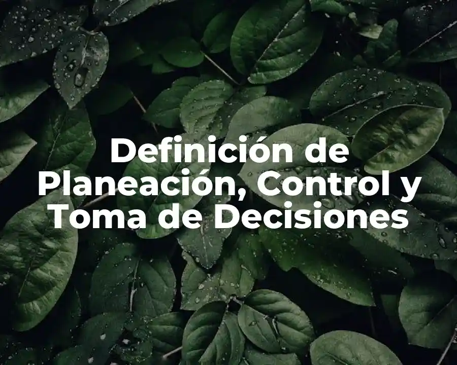 El término planeación, control y toma de decisiones se refiere a un proceso que implica la identificación de objetivos y metas, la definición de estrategias y tácticas, y la implementación de planes y acciones. Se debe usar en una oración para describir el proceso de toma de decisiones informadas y la evaluación constante para ajustar el curso de acción.
