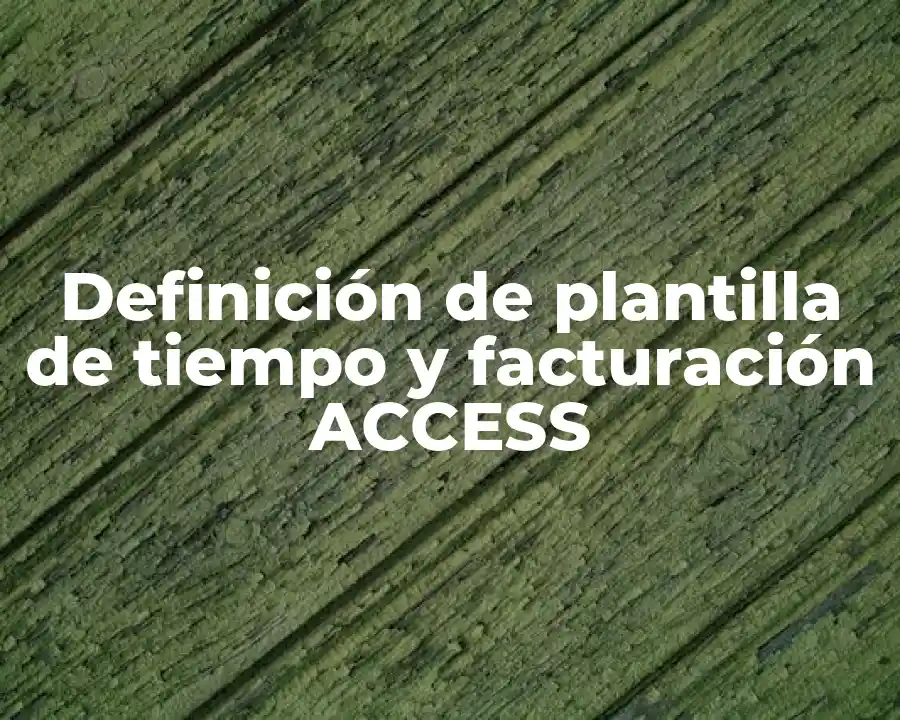 El término plantilla de tiempo y facturación ACCESS se refiere a un conjunto de herramientas que permiten a los usuarios registrar y facturar el tiempo dedicado a diferentes actividades o proyectos. Se debe utilizar en una oración como Utilizo la plantilla de tiempo y facturación ACCESS para registrar y facturar el tiempo dedicado a mis proyectos.