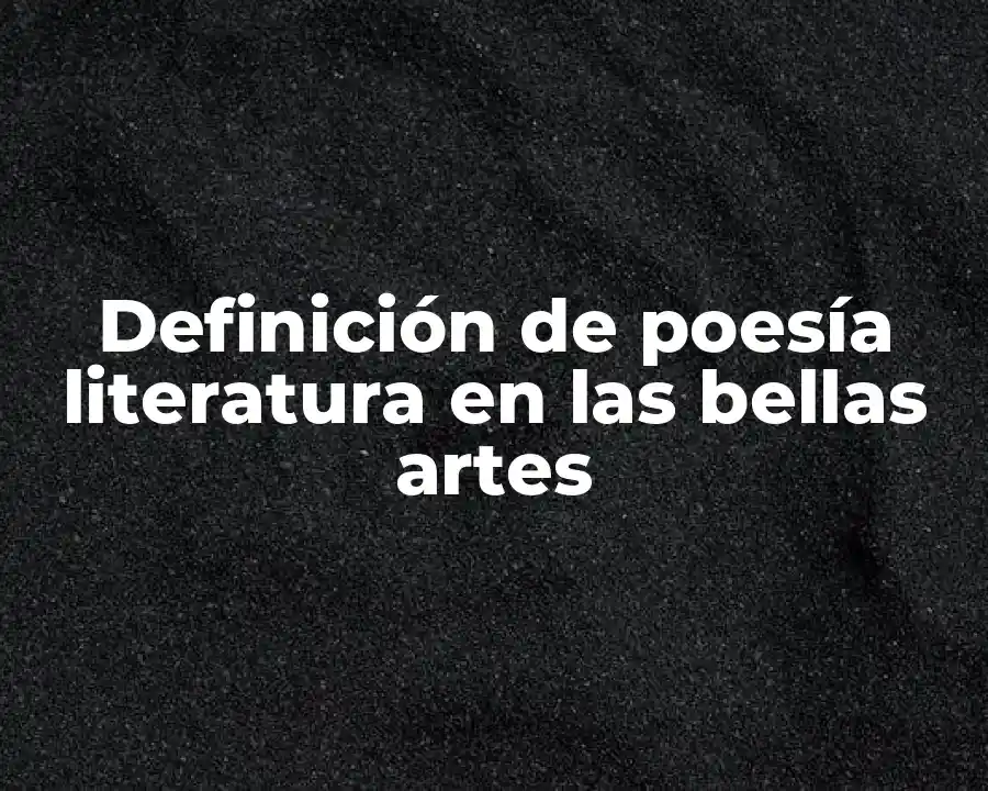 El término poesía literatura en las bellas artes se refiere a la creación de obras que buscan explorar la condición humana, la sociedad, la política, la cultura y la historia a través de la poesía, la narrativa y otros géneros literarios. Se debe usar en una oración como La poesía literatura en las bellas artes es un campo amplio y complejo que abarca la creación de obras que buscan explorar la condición humana, la sociedad, la política, la cultura y la historia a través de la poesía, la narrativa y otros géneros literarios.