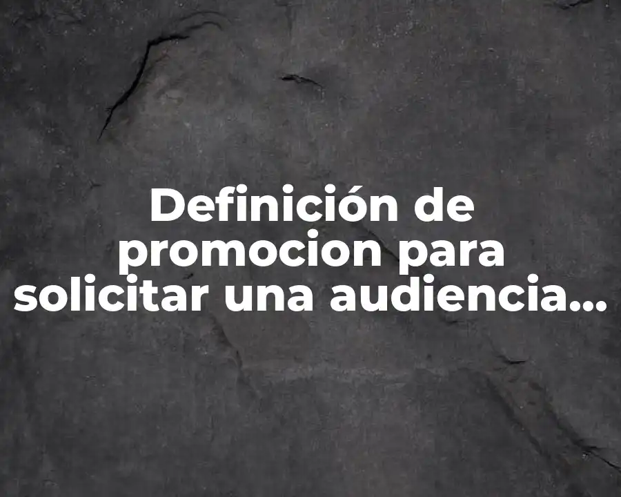 Respuesta: El término promocion para solicitar una audiencia en materia peal se refiere a la estrategia de comunicación y marketing que se utiliza para atraer y mantener a un público específico hacia un evento o reunión. Se puede usar en una oración como por ejemplo: La empresa utilizó una promocion efectiva para solicitar una audiencia en materia peal para promover su nuevo producto.