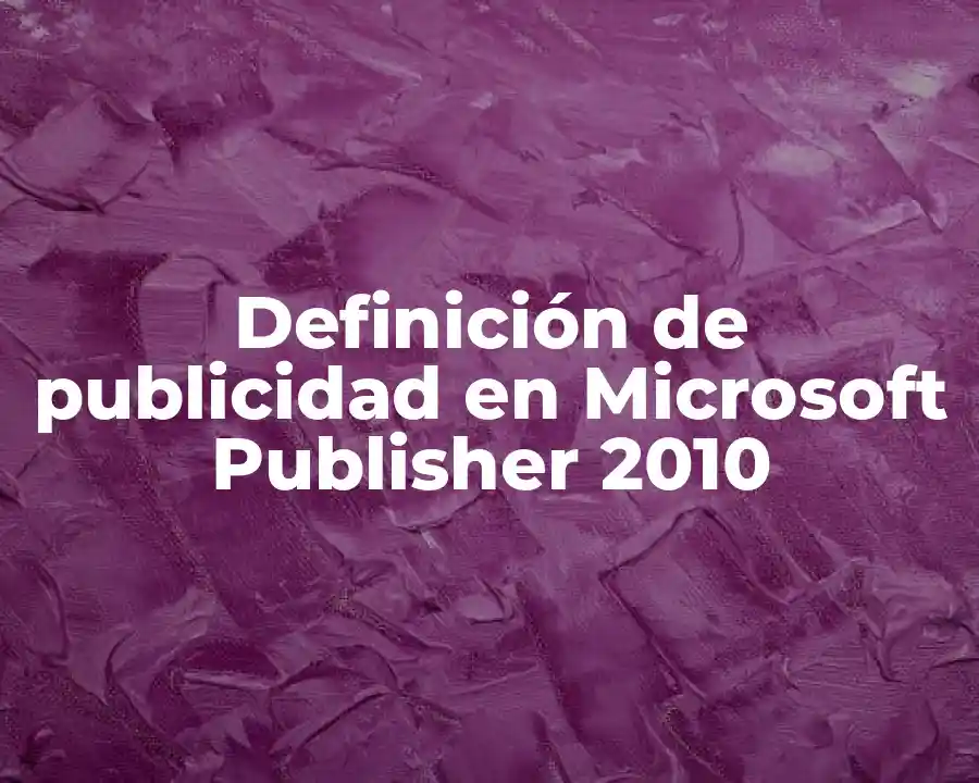 El término publicidad en Microsoft Publisher 2010 se refiere al proceso de crear y diseñar publicaciones impresas o digitales con el fin de promocionar productos, servicios o ideas. Se debe usar este término en una oración como sigue: La publicidad en Microsoft Publisher 2010 es una forma efectiva de promocionar productos, servicios o ideas de manera atractiva y profesional.