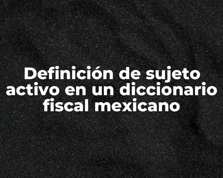 En este artículo, exploraremos la definición de sujeto activo en un diccionario fiscal mexicano, analizando su significado, características y aplicación en la contabilidad fiscal.