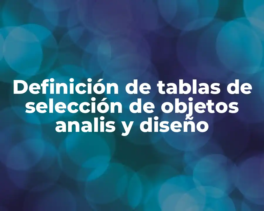 ¿A qué se refiere el término tabla de selección de objetos analis y diseño y cómo se debe usar en una oración?