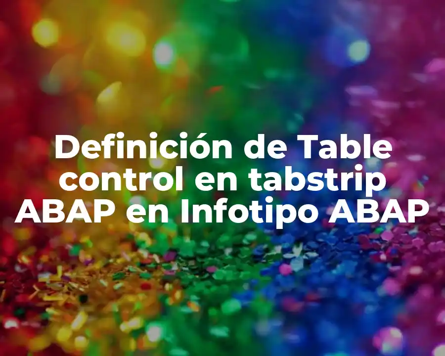 Respuesta: El término Table control en tabstrip ABAP en Infotipo ABAP se refiere a un control de tabla que se utiliza para presentar información de manera organizada y fácil de entender. El Table control es un elemento fundamental en la programación ABAP, ya que permite presentar datos de manera organizada y fácil de entender.