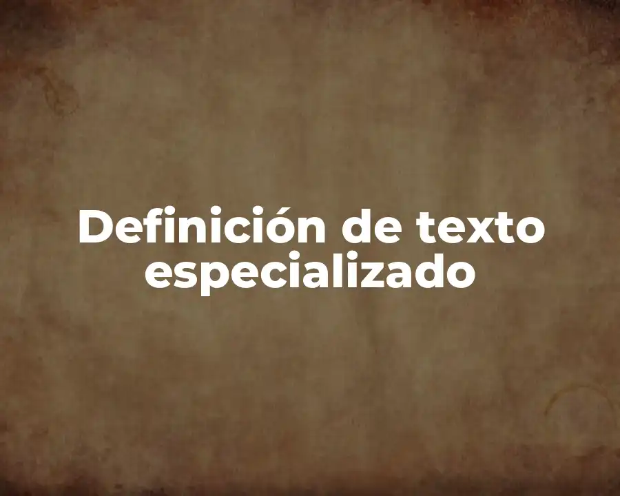 El término texto especializado se refiere a un tipo de texto que se caracteriza por utilizar un lenguaje formal y un vocabulario técnico, dirigido a un público especializado en el tema en cuestión. Se debe usar en una oración para describir un texto que se enfoca en un tema específico, utilizando un lenguaje formal y un vocabulario técnico.