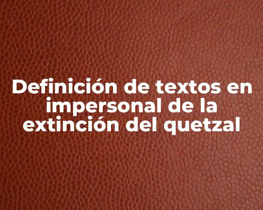 Un texto en impersonal es una forma de escritura que se refiere a sí mismo mediante el uso de pronombres y verbos que no están relacionados con el autor. En este caso, el texto en impersonal se enfoca en la extinción del quetzal, sin mencionar directamente al autor. La extinción del quetzal es un problema que afecta a toda la región.