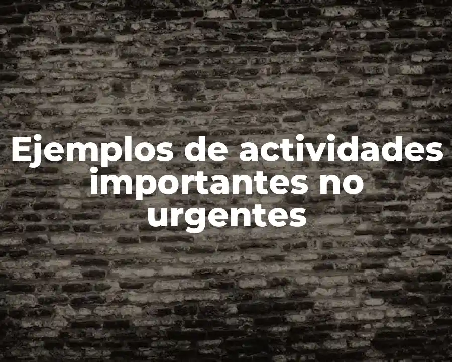 El término actividades importantes no urgentes se refiere a tareas que requieren tiempo y esfuerzo, pero no tienen un plazo límite para su conclusión. Se debe usar en una oración para describir una tarea que no es urgente, pero es fundamental para el crecimiento personal y profesional.
