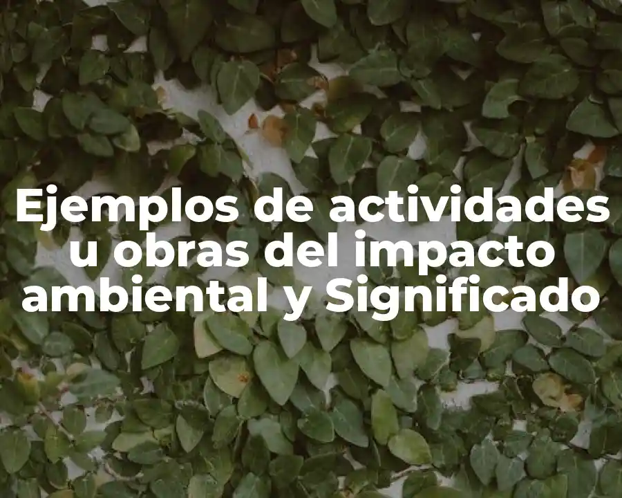 En este artículo, vamos a explorar el tema de las actividades u obras que pueden tener un impacto ambiental significativo. Según la Organización de las Naciones Unidas (ONU), el impacto ambiental se refiere a los efectos que las actividades humanas tienen en el medio ambiente y en la calidad de vida de las personas. En este sentido, es fundamental entender y abordar las diferentes formas en que nuestras acciones pueden afectar el planeta.