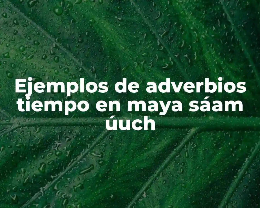 El lenguaje maya es una familia lingüística que comprende más de 30 lenguas habladas en Mesoamérica, y la lengua maya sáam úuch es una de ellas. Uno de los aspectos más interesantes de la gramática maya es la utilización de adverbios para indicar el tiempo en que se desarrolla una acción. En este artículo, exploraremos los ejemplos de adverbios de tiempo en maya sáam úuch.