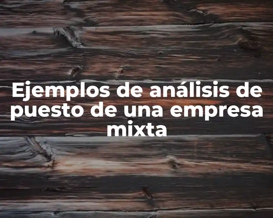 El término análisis de puesto de una empresa mixta se refiere a la evaluación detallada de los roles y responsabilidades dentro de una empresa que combina elementos de la administración pública y privada. En una oración, se puede usar el término de la siguiente manera: El análisis de puesto de la empresa mixta permitió evaluar los requisitos del puesto y las competencias necesarias para desempeñar el papel de gerente de finanzas.
