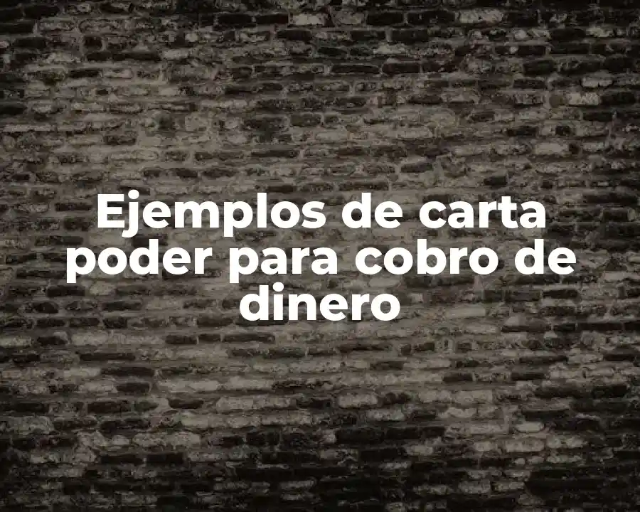 El término carta poder para cobro de money se refiere a un documento que otorga a una persona la autorización para cobrar una cantidad de dinero en nombre de otra persona. Se debe usar en una oración como por ejemplo: La carta poder para cobro de money fue emitida por el tutor para autorizar a la mandataria a cobrar $10,000.00 en nombre de la empresa.