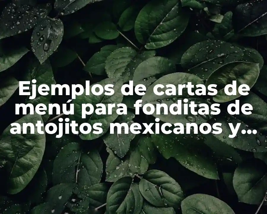 Un ejemplo de carta de menú para fonditas de antojitos mexicanos en la vida cotidiana es cuando una familia decide reunirse para compartir comida y bebida en un día festivo. La carta de menú ofrece una variedad de opciones ligeras y deliciosas que se pueden disfrutar mientras se conversa y se divierte.