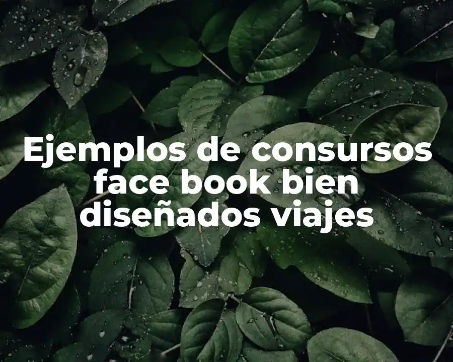 El término concurso face book bien diseñado viajes se refiere a un tipo de concurso que se lleva a cabo en una plataforma online como Facebook y se enfoca en atraer a un público específico. Se debe usar en una oración como El concurso face book bien diseñado viajes de la aerolínea ha atraído a muchos participantes y ha aumentado la visibilidad de la marca.