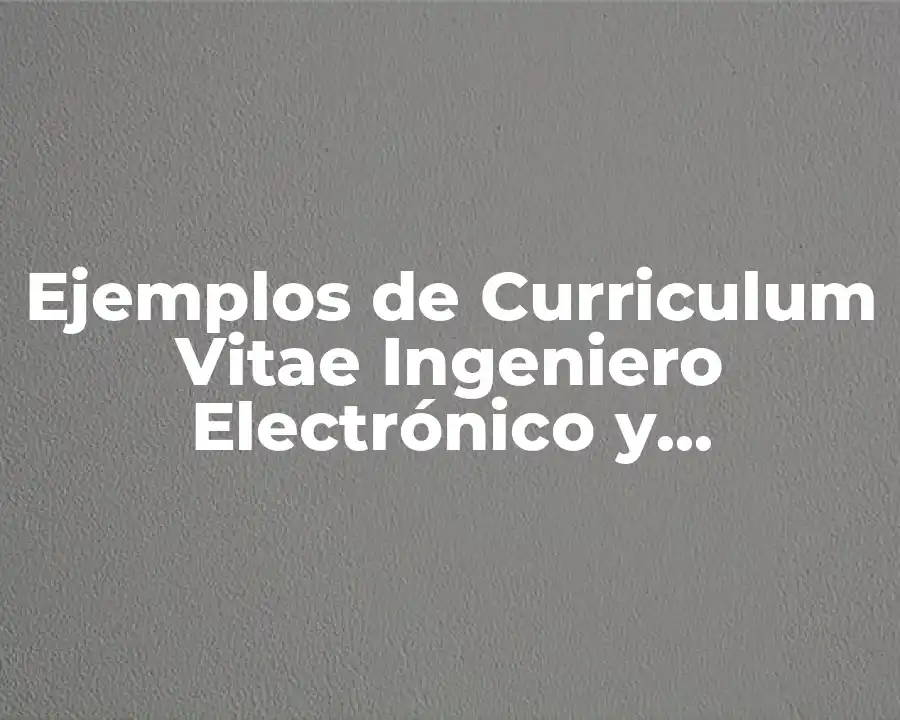 El término Curriculum Vitae Ingeniero Electrónico se refiere a un documento que resume la experiencia laboral y educación de un ingeniero electrónico. Se debe usar en una oración como sigue: