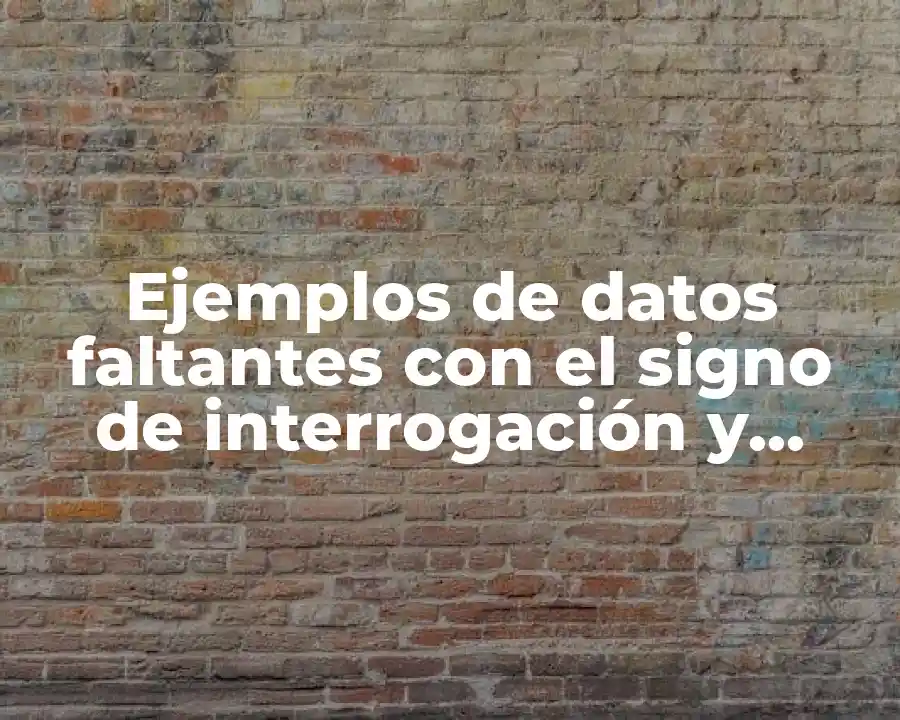 Los datos faltantes con el signo de interrogación se refieren a los datos que no tienen un valor asignado o que no están disponibles. Esto puede deberse a various razones, incluyendo la falta de información, la imposibilidad de recopilar datos o la pérdida de datos. El signo de interrogación (?) se utiliza para indicar que el valor faltante no se conoce o no se puede determinar.