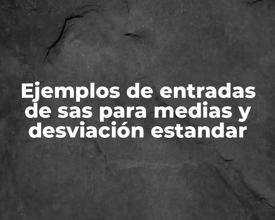El término entradas de sas para medias y desviación estandar se refiere a la técnica de cálculo de la media y la desviación estandar de una variable o conjunto de variables. Se debe usar en una oración como La empresa utiliza entradas de sas para medias y desviación estandar para analizar la distribución de las ventas.