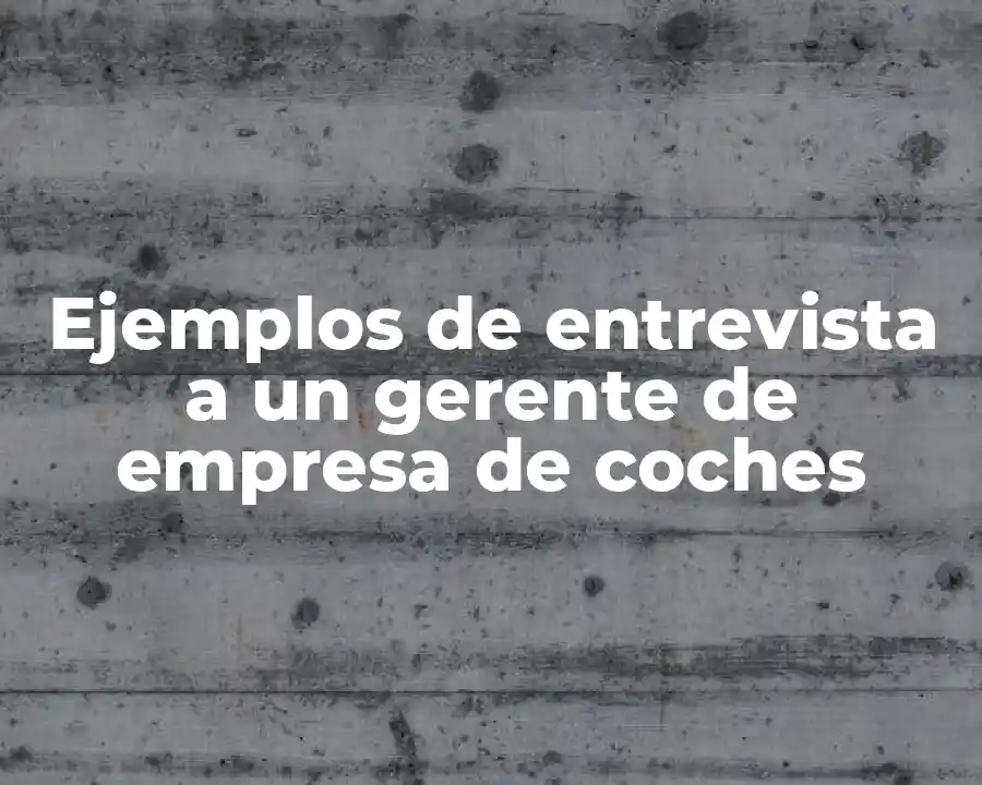 El término entrevista a un gerente de empresa de coches se refiere a un proceso de evaluación y selección de candidatos para cargos gerenciales en empresas que se dedican al sector del transporte de coches. Se debe usar en una oración como: La empresa está realizando una entrevista a un gerente de empresa de coches para llenar el cargo vacante.