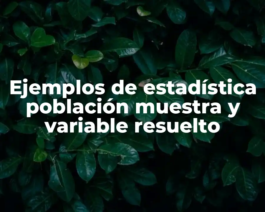 El término estadística población muestra y variable resuelto se refiere a la recopilación, análisis y presentación de datos para describir y analizar la población y sus características. Se debe usar en una oración como sigue: La estadística población muestra y variable resuelto se utiliza para describir y analizar la población y sus características.