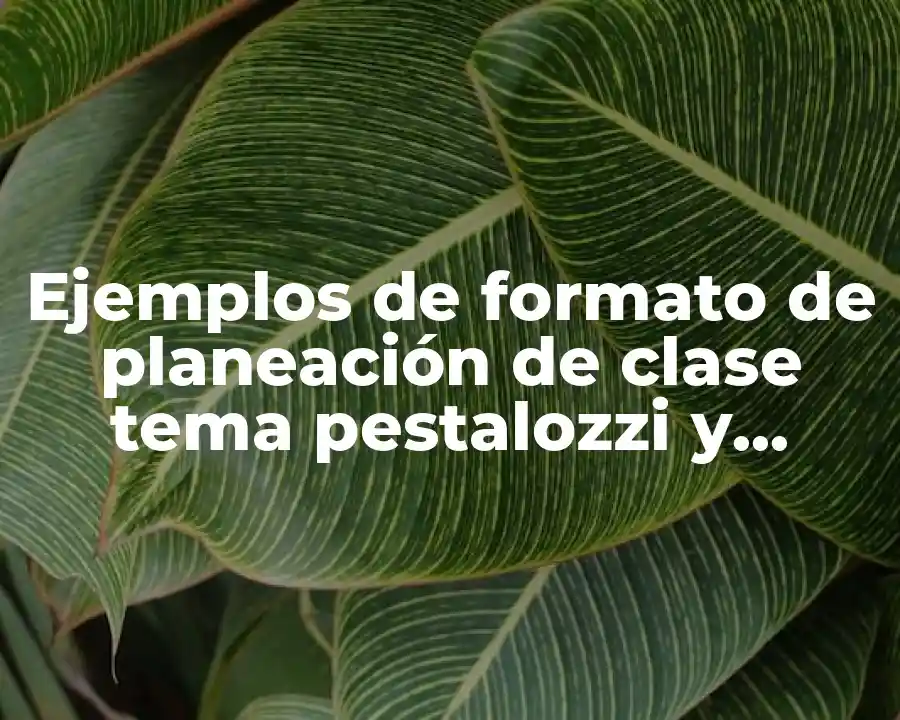 El término formato de planeación de clase tema Pestalozzi se refiere a un enfoque educativo que se centra en la educación integral y holística, y en la creación de un ambiente de aprendizaje que fomente la colaboración y la comunicación efectiva. Se puede usar en una oración como sigue: El formato de planeación de clase tema Pestalozzi es un enfoque educativo que se centra en la educación integral y holística, y en la creación de un ambiente de aprendizaje que fomente la colaboración y la comunicación efectiva.