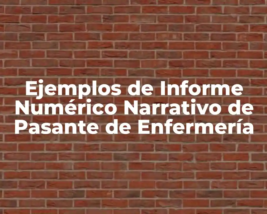 El término informe numérico narrativo de pasante de enfermería se refiere a un documento que combina la presentación de datos numéricos con una narrativa clara y concisa sobre la experiencia y los hallazgos del pasante durante su práctica profesional. Debe ser utilizado en una oración para documentar la experiencia y los hallazgos del pasante durante su práctica profesional.