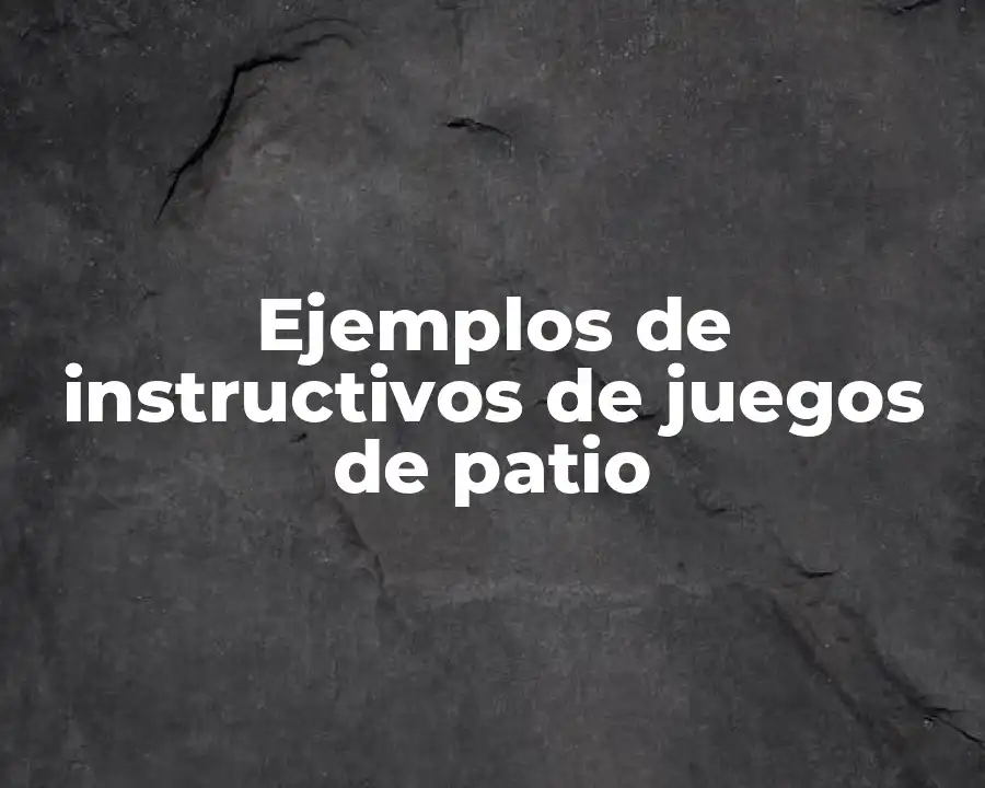 El término instructivos de juegos de patio se refiere a documentos que presentan reglas claras y concisas para jugar a juegos en el patio. Se puede usar en una oración como lo siguiente: Los instructivos de juegos de patio pueden ser utilizados para enseñar a los niños a jugar juegos en el patio de manera segura y divertida.