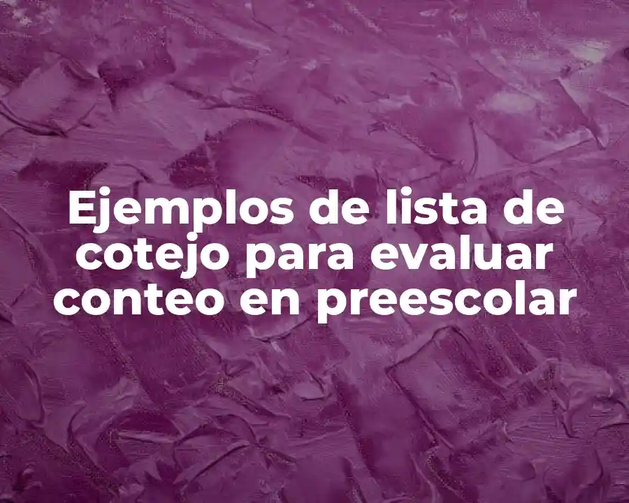 El término lista de cotejo para evaluar conteo en preescolar se refiere a un instrumento educativo que se utiliza para evaluar la comprensión y las habilidades de los niños en el conteo. Se debe usar en una oración como sigue: La lista de cotejo para evaluar conteo en preescolar es un instrumento educativo que se utiliza para evaluar la comprensión y las habilidades de los niños en el conteo.
