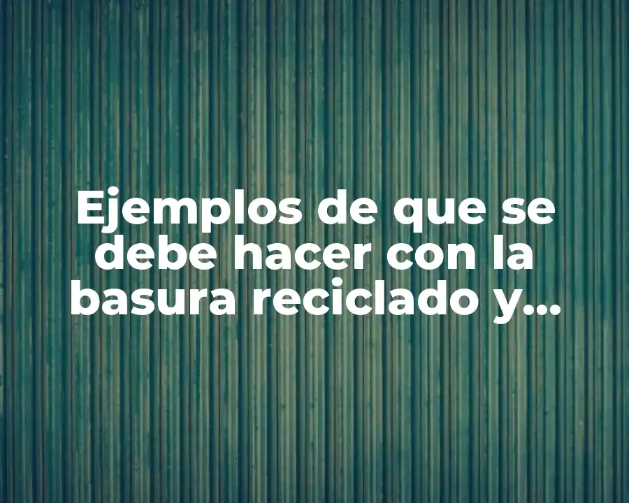 Un ejemplo de que se debe hacer con la basura reciclado en la vida cotidiana es separar los residuos en categorías específicas. La separación de residuos es la primera etapa en el proceso de reciclado. Puede hacer esto en su hogar, en su trabajo o en su comunidad. Luego, puede llevar los residuos reciclados a un centro de reciclaje o un contenedor especializado.