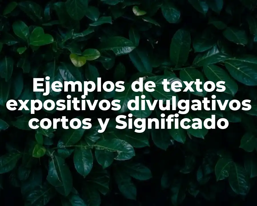El término texto expositivo divulgativo corto se refiere a una forma de comunicación escrita que se utiliza para informar y educar a los lectores sobre un tema específico de manera clara y concisa. Se debe usar en una oración como sigue: El texto expositivo divulgativo corto es una herramienta poderosa para presentar información breve y concisa a un público amplio.