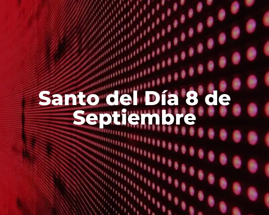 El santo del día 8 de septiembre es Natividad de María, también conocido como la Natividad de la Virgen María. Este día se celebra la fecha de nacimiento de la Virgen María, que según la tradición católica, nació en Jerusalén en el año 20 a.C. La Natividad de María es una fiesta muy importante en la Iglesia Católica, ya que se considera que la Virgen María es la madre de Jesús y la madre de la Iglesia.